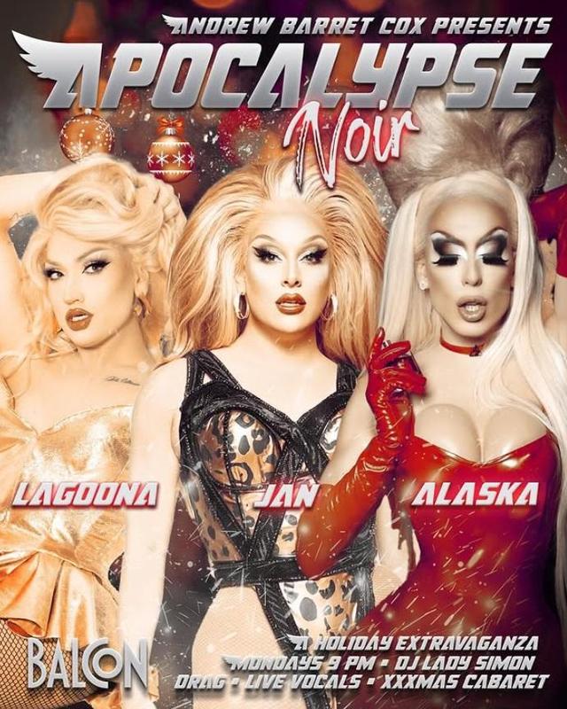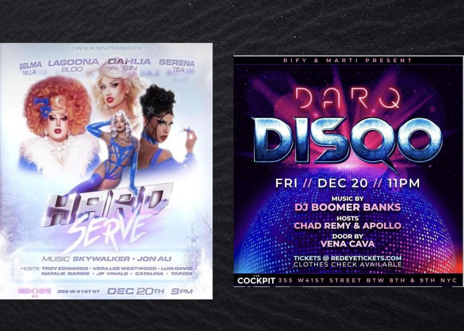 FRIDAY (12.27.2024) Your daily guide to New York and New Jersey nightlife programming. UPTOWN / BRONX TOOLBOX: Heidi N. Dix (8pm) SUITE: Karaoke hosted by Victoria Chase (9pm) LAMBDA LOUNGE: DJ dance party (10pm) HELL’S KITCHEN / MIDTOWN NEW WORLD STAGES: Drag: The Musical starring Alaska, Lagoona Bloo, Jujubee, Jan Sport, Adam Pascal, J. Elaine Marcos, Nick Adams, LuxxContinueContinue reading “Friday (12.27.2024)”