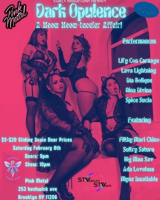 The healing powers of art! You’re also producing “Dark Opulence” at Pink Metal on Saturday, with a large “macabre” burlesque cast.
