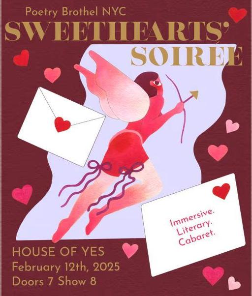 Then on Wednesday the 12th, you’ll be at House of Yes for Poetry Brothel’s “Sweethearts Soirée.” Looks like there will be both poetry along with performance.