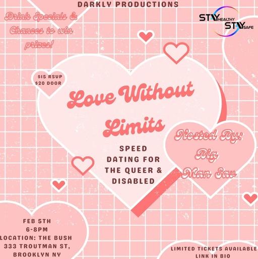 You’ve got some interesting things coming up, both stuff you’re producing and shows you’re taking part in. On Wednesday, February 5th at The Bush in Brooklyn, there’s “Love Without Limits,” a night of “speed dating for the queer and disabled!’
