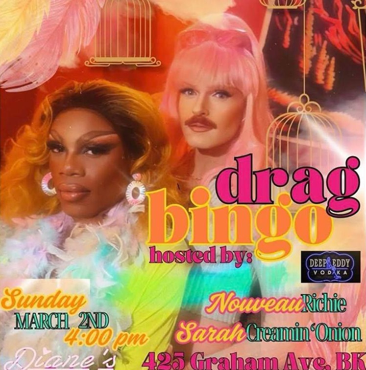 And Sunday you’ll be joining Nouveau Richie for bingo at another venue, Diane’s!