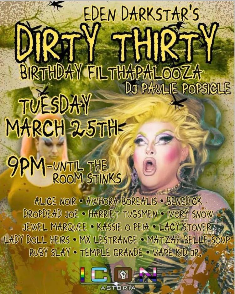 Excellent! In the meantime, you’ll be making another return of sorts this Tuesday: back to Icon in Astoria, where you competed in “Pantheon!” This time it’ll be for the “Dirty Thirty” birthday bash of your season’s winner Eden DarkStar, and many other fellow competitors from your season will be in the house, too!