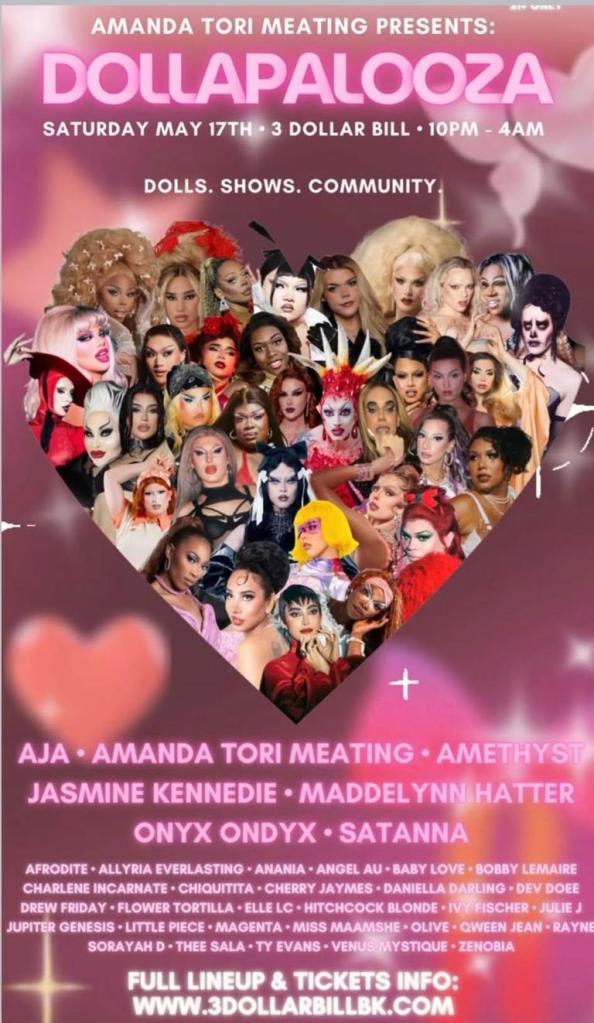 You’ll return to NYC on Saturday, May 17th for a very special showcase at 3 Dollar Bill in Brooklyn: “Dollapalooza,” hosted by Drag Race’s Amanda Tori Meating and featuring a huge cast of trans drag performers and showgirls including Drag Race’s Aja, Amethyst and Jasmine Kennedie, fellow Dragula alums Satanna and Maddelynn Hatter, and many local talents! So how excited are you for this show… and as a trans woman and performer living in this moment, how important is it for all of us to be supporting and celebrating all the dolls?