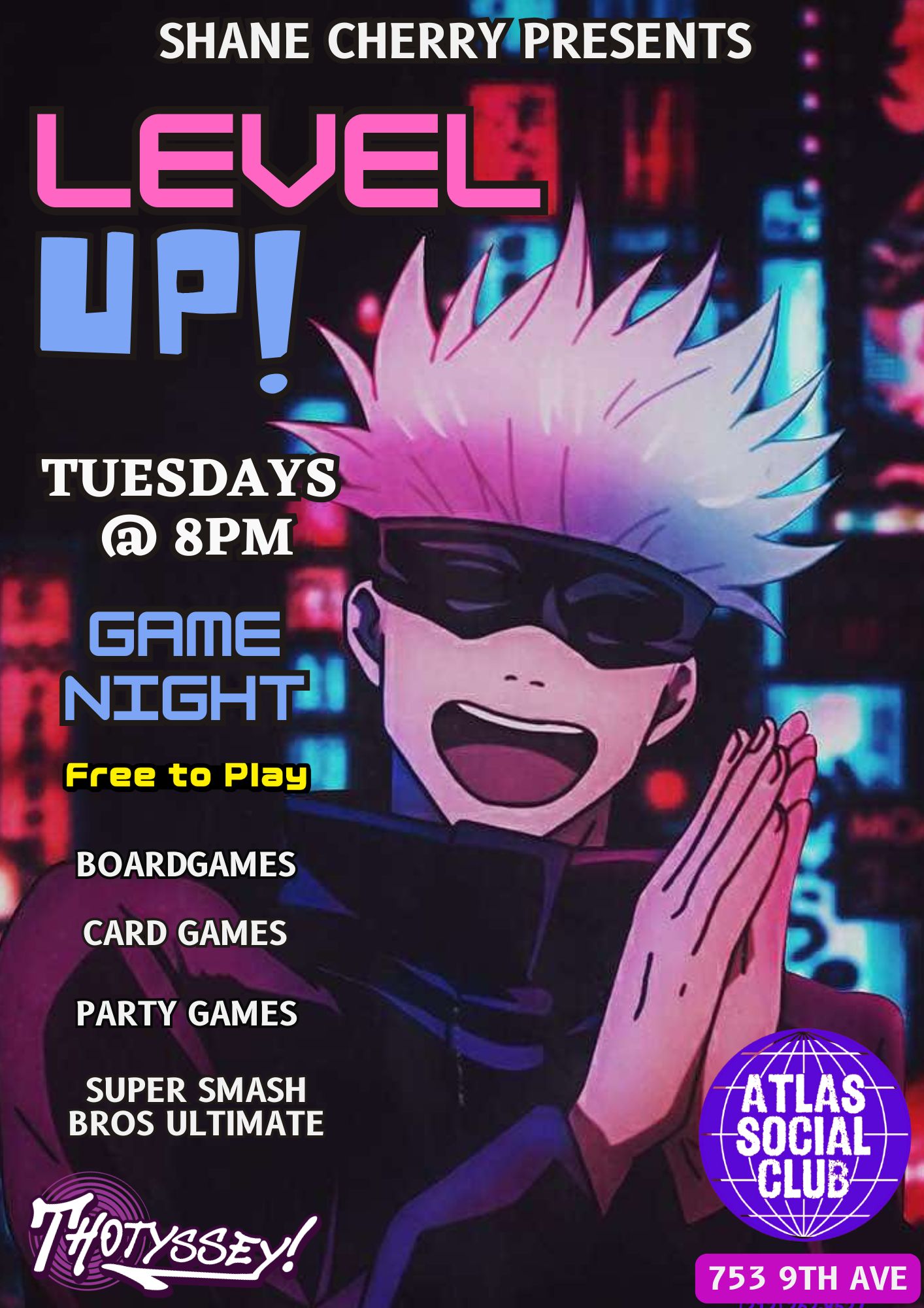 - ATLAS SOCIAL CLUB: “Level Up” geeky name night hosted by Thotyssey & Shane Cherry (8pm)