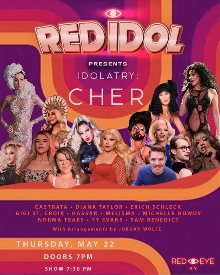 The “Red Idol” extended family has reunited a few times for a live diva worship series called “Idolatry.” That will happen again at Red Eye on Thursday for a Cher edition, which you will partake in!
