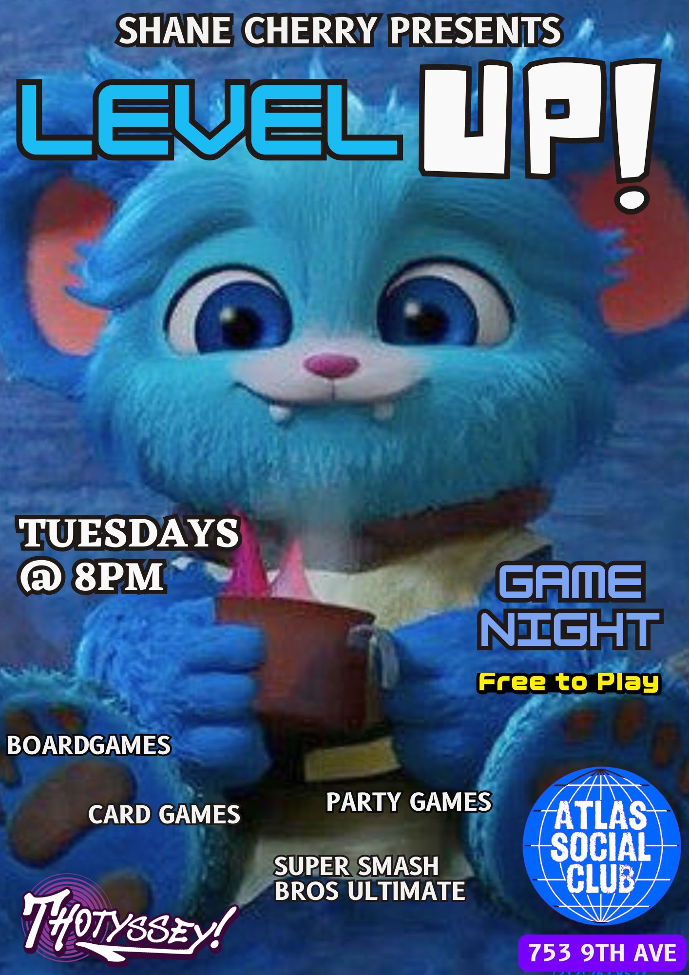 Jasmine Rice LaBeija & Chicky Gorgina (9pm) - ATLAS SOCIAL CLUB: “Level Up” geeky name night hosted by Thotyssey & Shane Cherry (8pm)