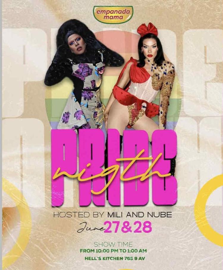 And on Pride Friday and Saturday, you and Mili will be serving dinner shows at hotspot Empanada Mama in Hell’s Kitchen.