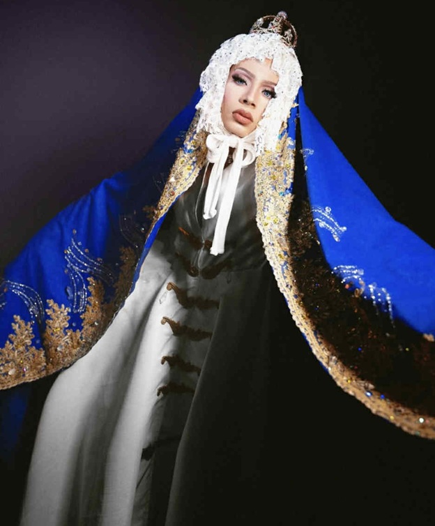Honestly, my style is born from a mix of the celestial and the street. I draw inspiration from legends like Alexander McQueen for the drama and storytelling, Jean Paul Gaultier for his rebellious spirit, and the raw, inventive energy of Latin drag and ballroom culture — where we make magic out of scraps and imagination. Nature is also a big influence for me — clouds, storms, the way the sky shifts — because I’m here to float, yes… but also to strike.