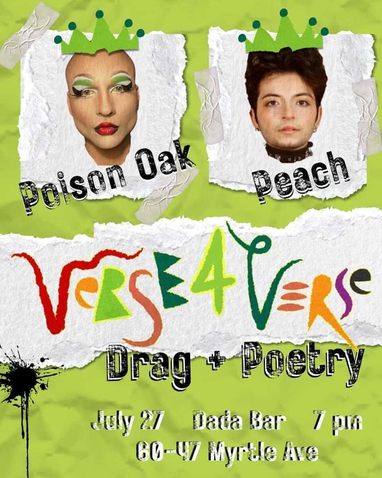 Most exciting will be a big two show day on July 27: first at Boyfriend Material drag brunch hosted by Mister Right in Philly, which I am so honored to be a part of! Then joining Poison Oak at their drag poetry show “Verse4Verse” [at Dada Bar] in Ridgewood!
