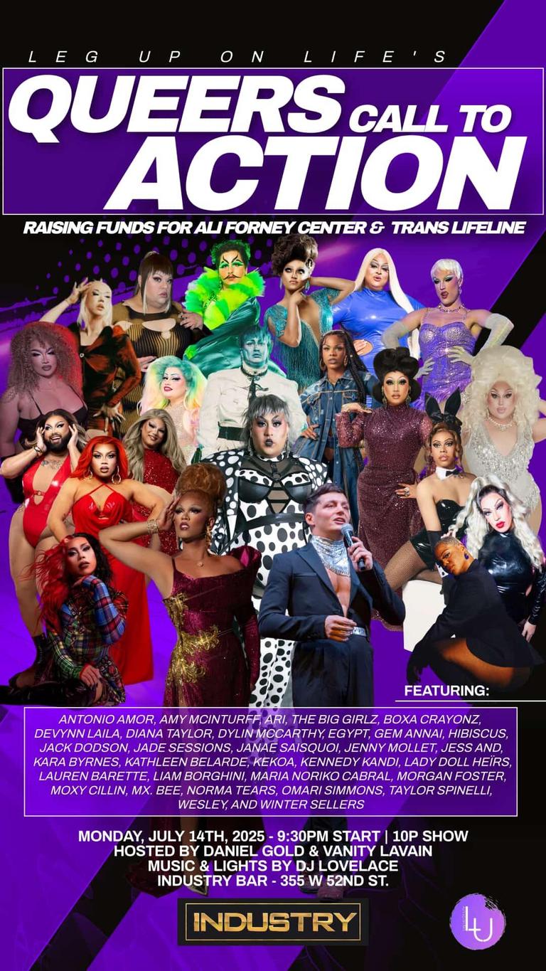 - INDUSTRY:”Queers Call to Action” hosted by Daniel Gold & Vanity LaVain feat. Antonio Amor, The Big Girlz, Boxa Crayonz, Diana Taylor, Egypt, Gem Annai, Hibiscus, Janae SaisQuoi, Jess And, Kekoa, Lady Doll Heirs, Liam Borghini, Moxy Cillin, Mx. Bee, Norma Tears, Wesley & more with DJ Catrina Lovelace (10pm)