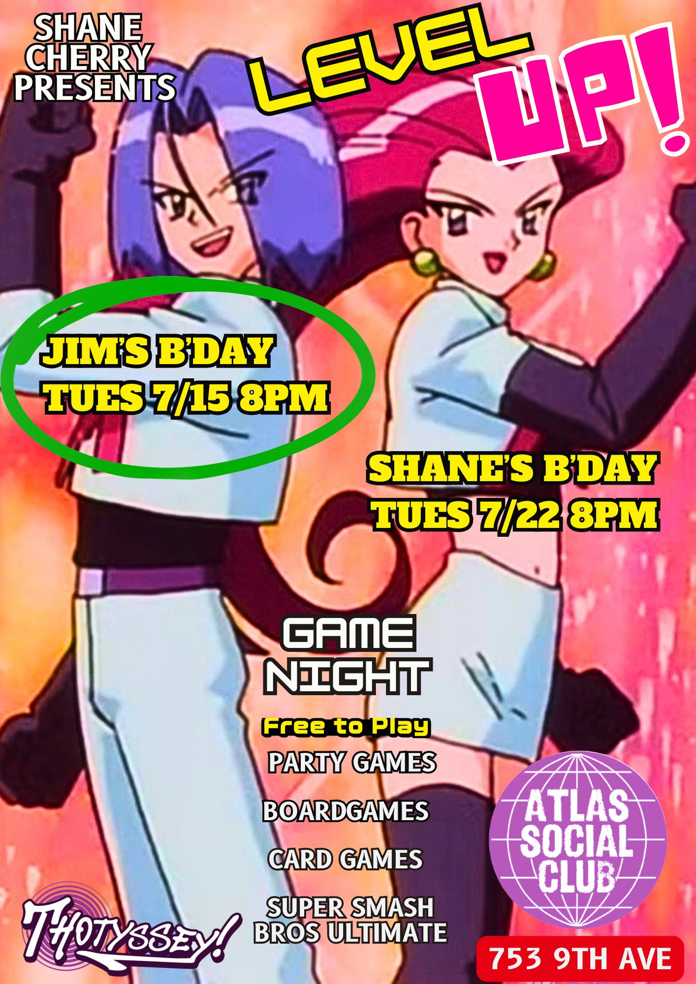 Reese Havoc & Hanukah Lewinsky (10pm) - ATLAS SOCIAL CLUB: “Level Up” geeky name night hosted by Thotyssey & Shane Cherry (8pm)