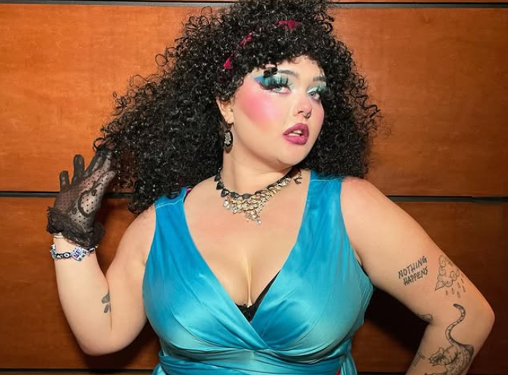 Sadly, I was a late bloomer! I was living in Vermont when I turned 23 and came out as lesbian, when I saw Gottmik’s “A Tale and Two Titties” runway from [RuPaul’s Drag Race] All-Stars 9 on Twitter. I was absolutely enamored, and it impacted me in a way fashion never has before. My roommate at the time (shoutout Ali, I love you!) also never watched Drag Race and wanted to, so we got into it together! I realized drag is exactly what I was looking for, and basically what I was doing my whole life unknowingly!