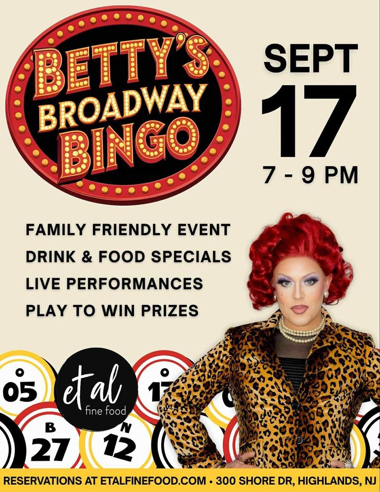 Yes, I’m so excited for Wednesday night. Et Al is a divine spot — a French bistro style venue with a gorgeous dining salon and a sweet bar and garden patio; resident Queen Betty hosts a different event there monthly. Wednesday night is Broadway Bingo! I’ll be singing showtunes, and the winners of each round will actually get to pick songs for a crowd singalong. My special guest is local actor Dennis Daprile, who is as sweet and charming as he is talented. Then on Halloween night, Betty will be back at Et Al for a Rocky Horror themed show!