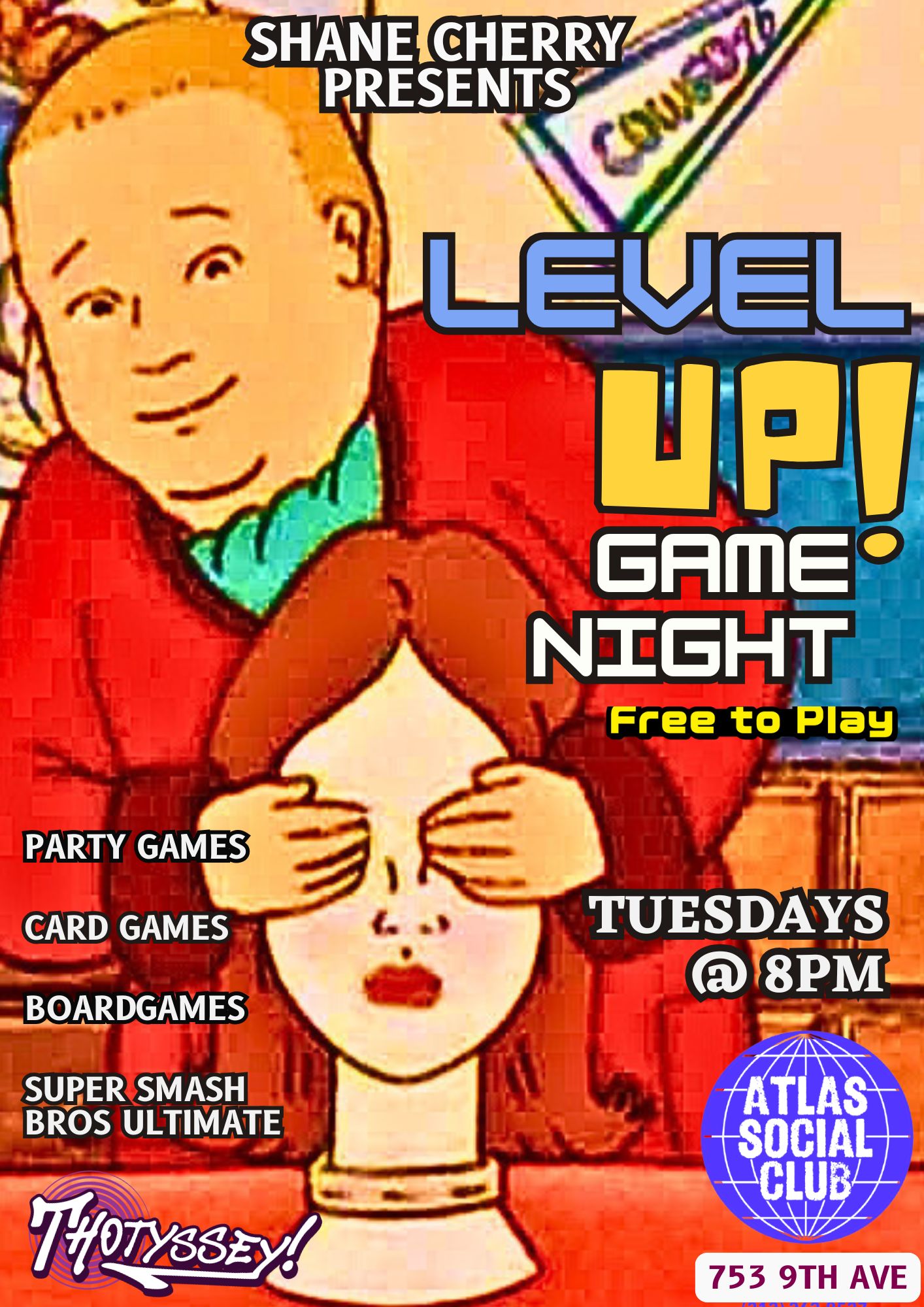 - ATLAS SOCIAL CLUB: “Level Up” geeky name night hosted by Thotyssey & Shane Cherry (8pm)