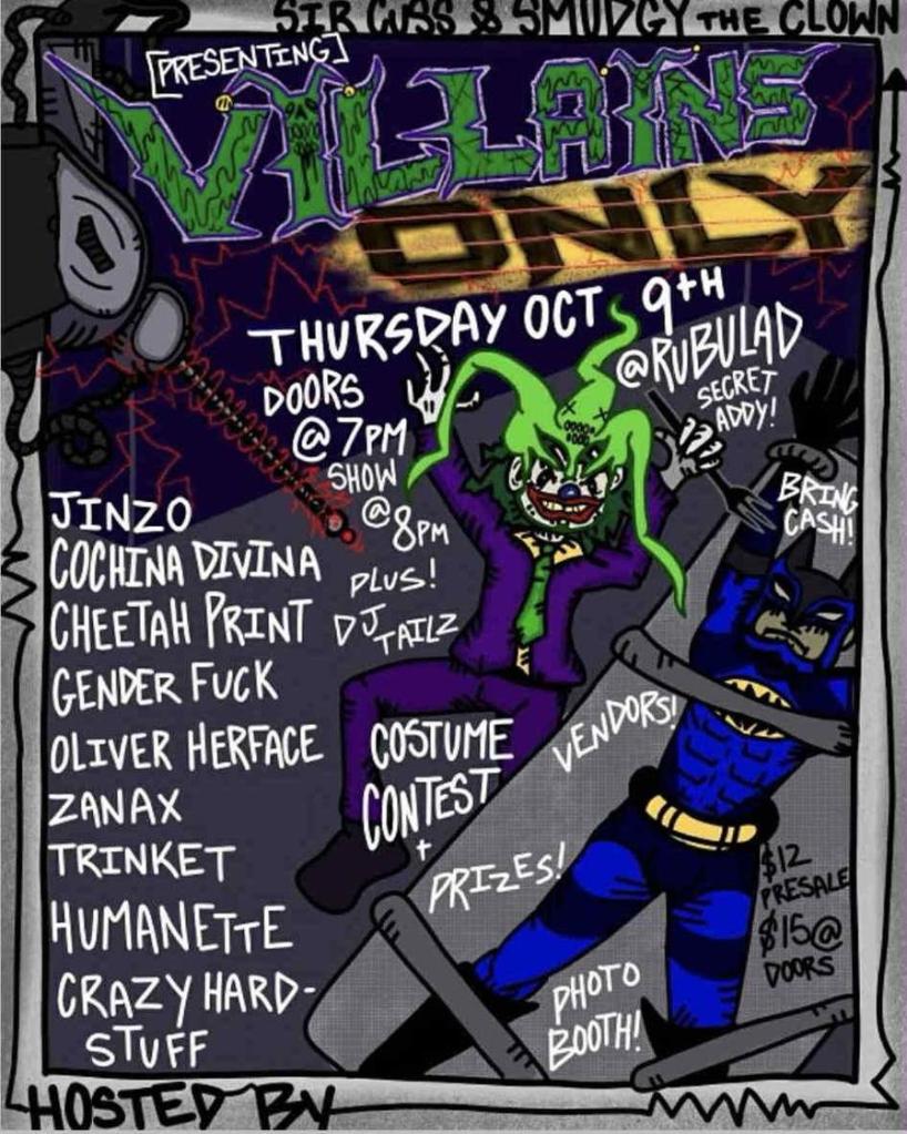 On Thursday, October 9th, you’re perfectly cast for “Villains Only” at Rubulad!