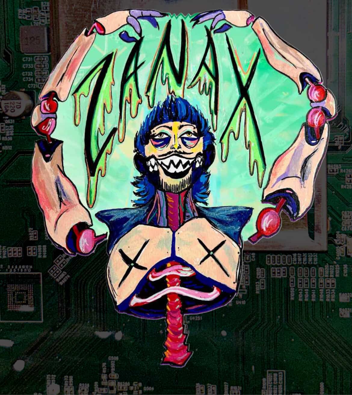 I pull from my imagination a lot! At the end of the day Zanax is a comic book character, and his face reflects that — especially in the early years. His backstory is a Pinocchio-esque robot boy who got thrown away for not acting in line with his girl programming. Now he’s figuring out how to fit in with society on his own terms, but doesn’t really know how. This has taken on many forms over the years, so any time you see a number, it’s another piece of his little universe.