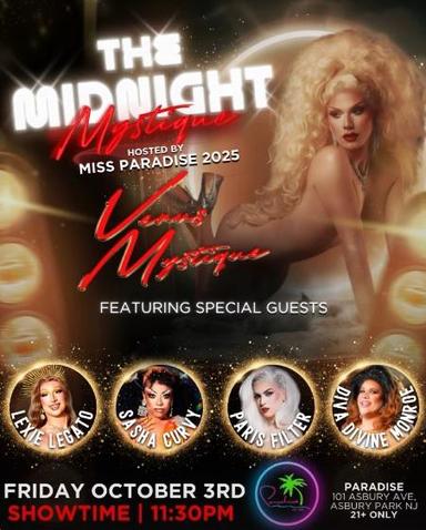 And then Friday, you’ll be at Paradise with the gorge Venus Mystique and a bevy of beauties!