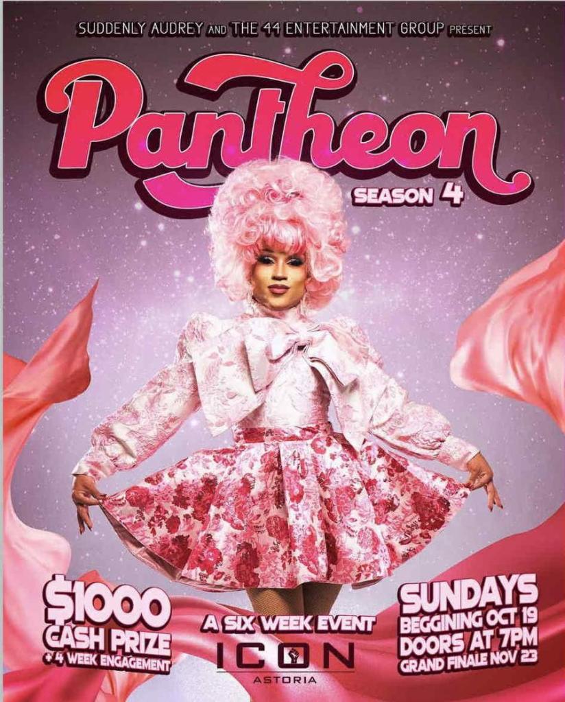 Yes! And speaking of groups, you’re now part of a very exclusive one: the cast of “Pantheon Season 4!” That’s a six week drag competition starting October 19th at Icon Astoria, hosted by Suddenly Audrey! What made you want to partake in this, and what can we expect?