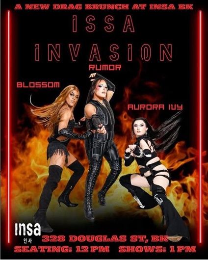 I now have a monthly brunch at Insa Restaurant in Brooklyn with Aurora Ivy and Rumor! Every third Sunday at noon. You can also catch me every Saturday night as your door girl at Lips Restaurant for all evening sittings!