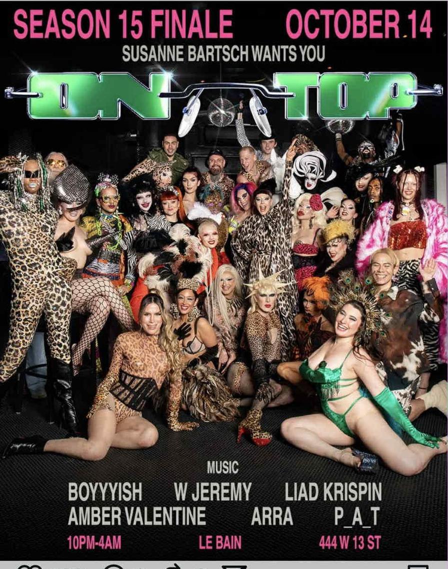 - LE BAIN / STANDARD HIGH LINE: Susanne Bartsch’s “On Top” feat. DJs Boyyyish, W. Jeremy, Llad Krispin, Amber Valentine, ARRA & P_A_T – finale (10pm)