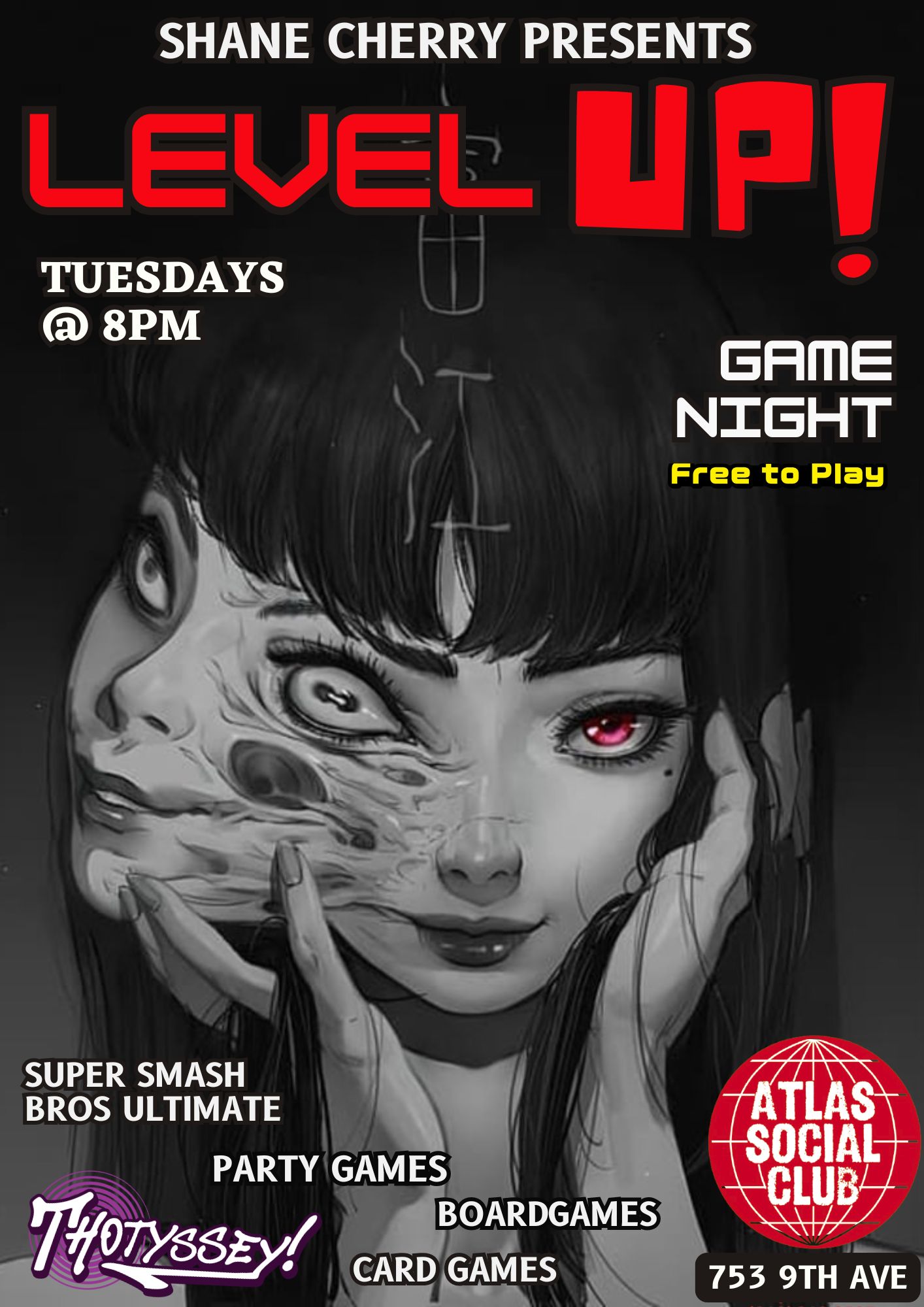 - ATLAS SOCIAL CLUB: “Level Up” geeky name night hosted by Thotyssey & Shane Cherry (8pm)