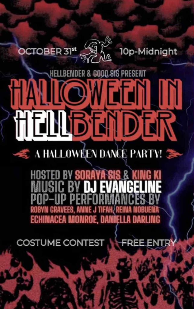 Folks can find you co-hosting a Halloween night show with Soraya Sis at a venue called Hellbender in Ridgewood.