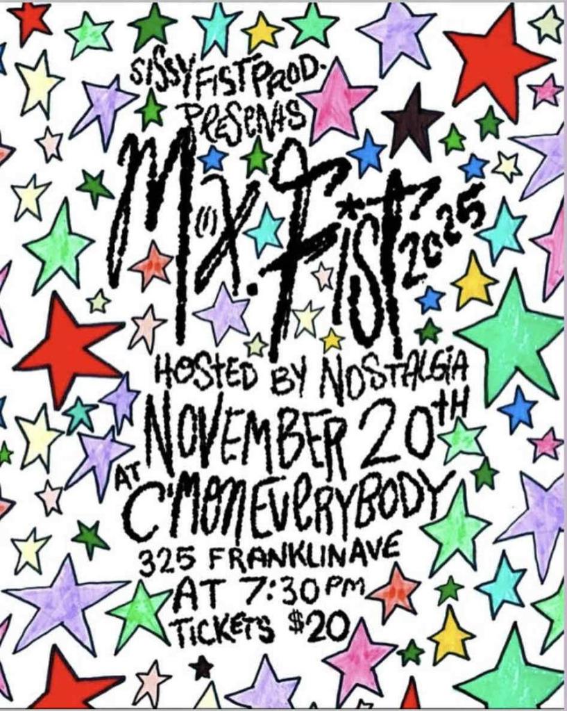 Meanwhile, you are still competing “Mx. Fist” on November 20th at C’mon Everybody!