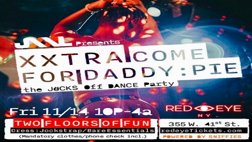 DJ Alpha Moses & Lanyé Armön with Tina Twirler & Kamilla Kockman (11pm) - RED EYE: “JXXL: Come For Daddy” feat. DJs Ben Schultz & AutoGyro (10pm)