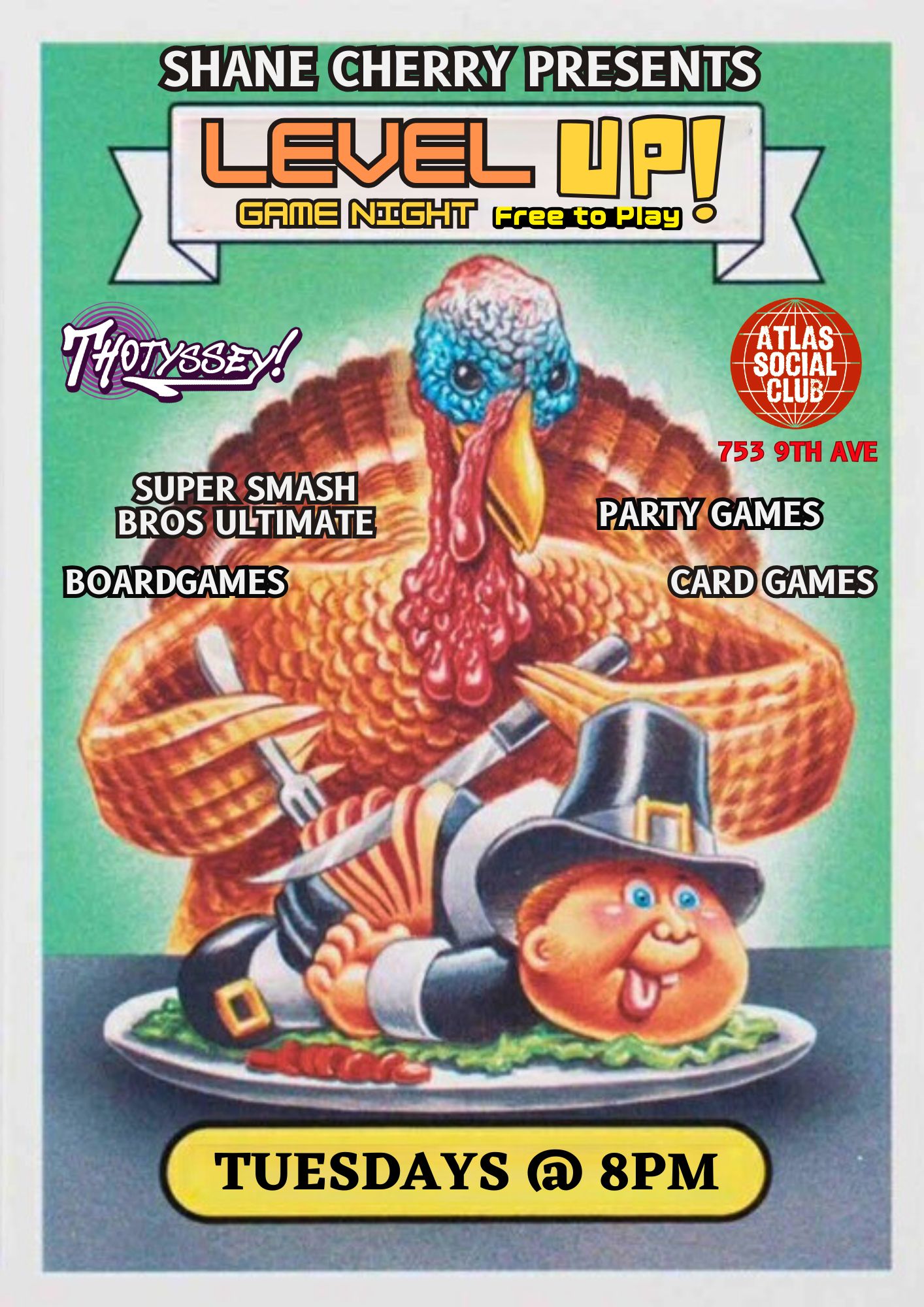 - ATLAS SOCIAL CLUB: “Level Up” geeky name night hosted by Thotyssey & Shane Cherry (8pm)