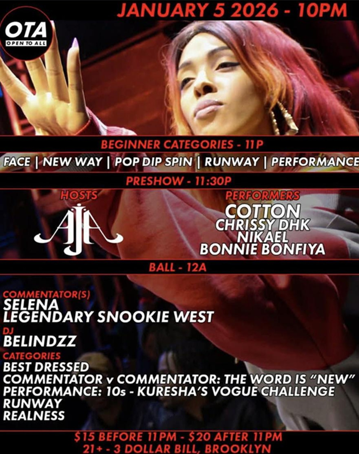 - 3 DOLLAR BILL: Leggoh JohVera’s “OTA” ballroom feat. Aja (11pm)