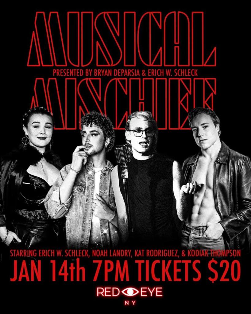 I’m so excited to be back with “Musical Mischief” this year! I joined the team in June of 2025, and it has truly been a pleasure. Working with my fellow queer creatives Erich W. Schleck and Bryan Deparsia to curate this show has been a joy, and all of our guests from Broadway and beyond never fail to amaze me with their talent!
