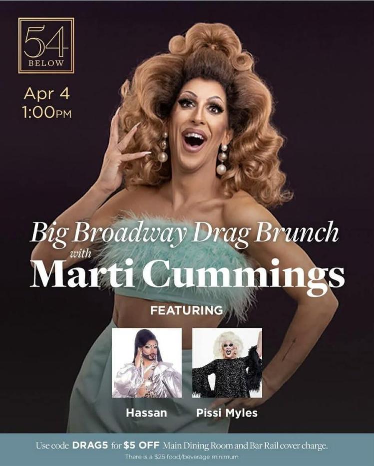 I also see that you and Pissi Myles are gonna be Marti Gould Cummings‘ guests for the Big Broadway Drag Brunch at 54 Below on April 4th! That’s very prestigious!