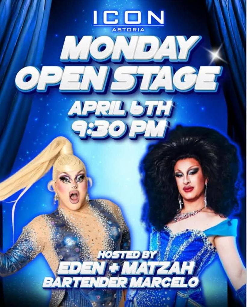 Then Monday you’ll be at Icon with Eden DarkStar and Matzah Belle Soup for a special open stage show! Will this be your Queens debut?