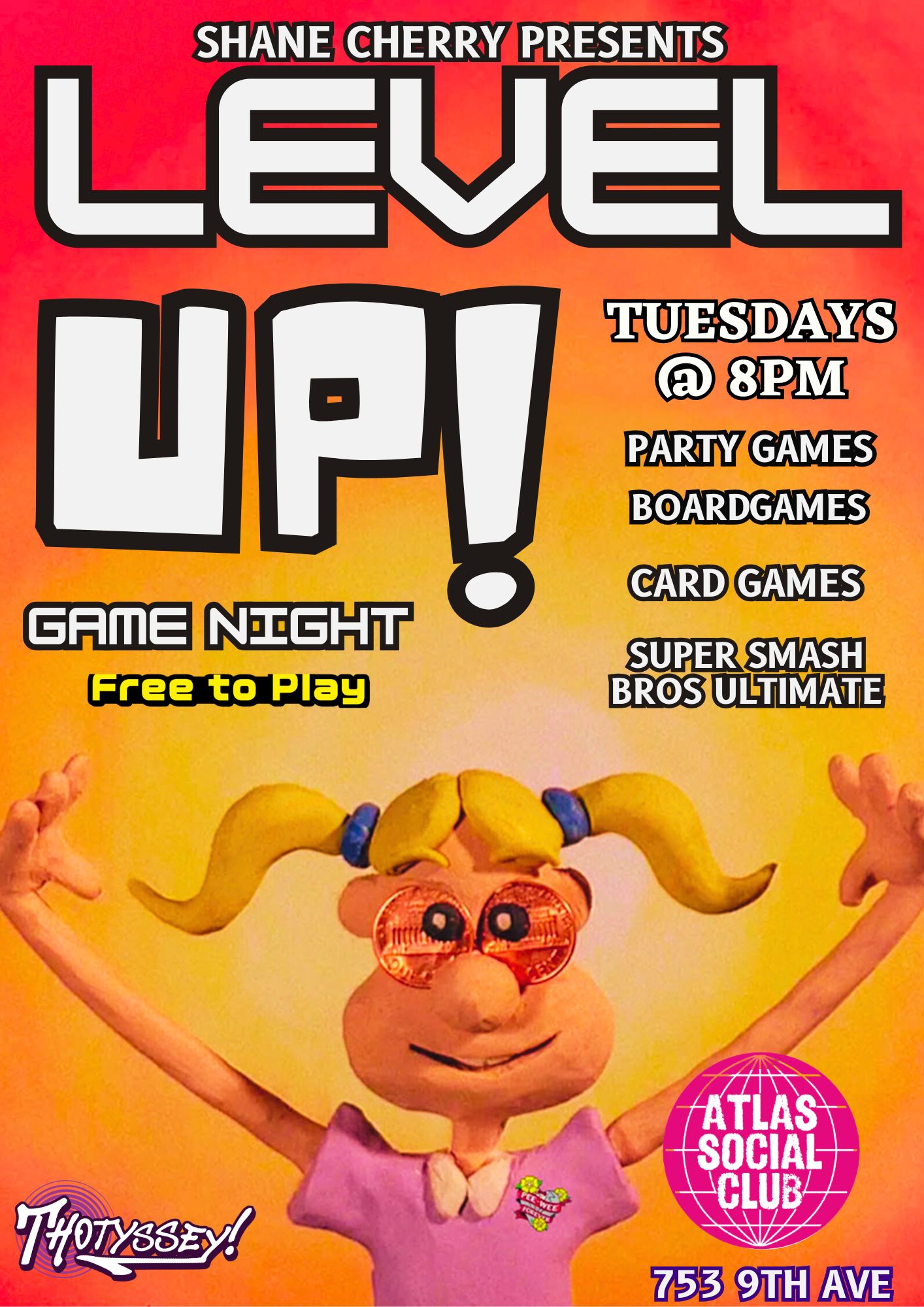 - ATLAS SOCIAL CLUB: “Level Up” geeky name night hosted by Thotyssey & Shane Cherry (8pm)