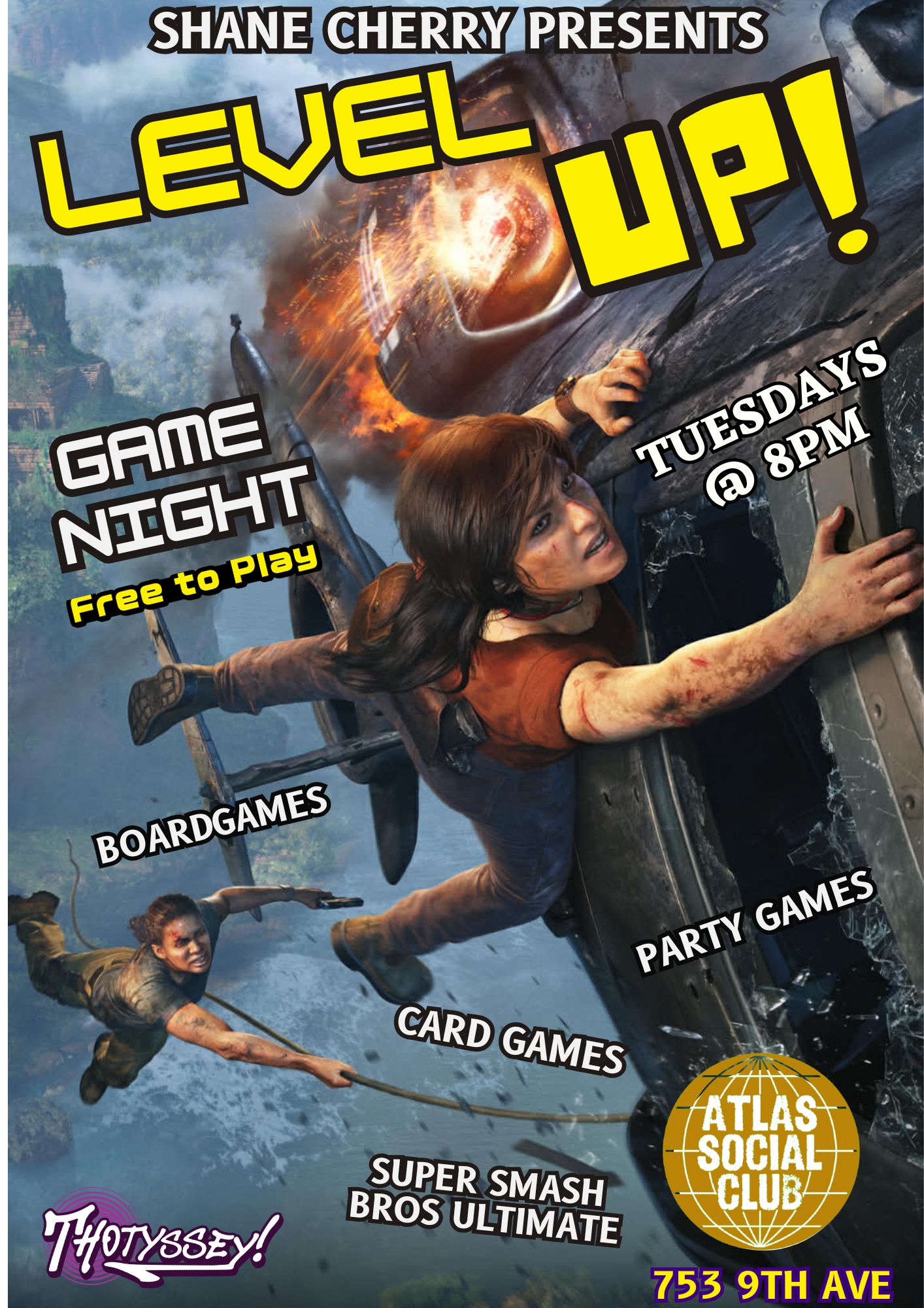 - ATLAS SOCIAL CLUB: “Level Up” geeky name night hosted by Thotyssey & Shane Cherry (8pm)