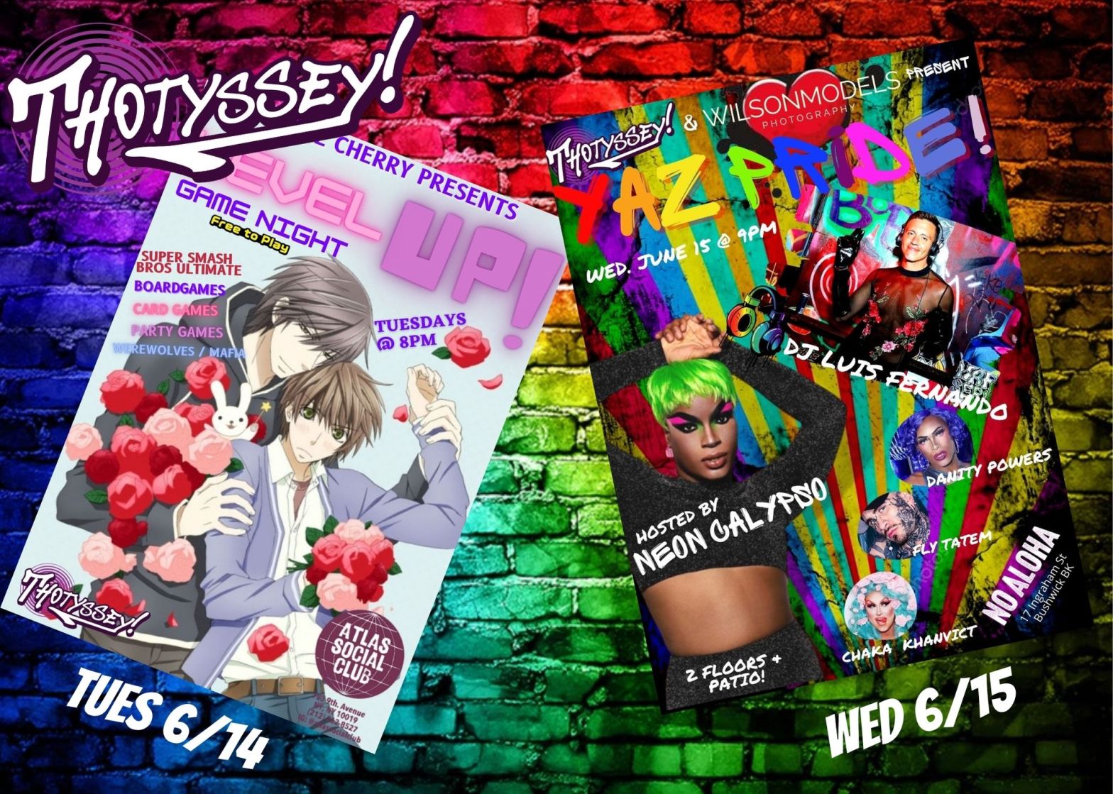 Besides listing everyone’s events and interviewing folks in the scene, Thotyssey also produces acclaimed events of her own! You can find us in two places this week: Tuesday, 6/14. It’s a Pride Week installment of our game night LEVEL UP at Atlas Social Club, featuring gamesmaster Shane Cherry! It’s a laid back affair featuring boardContinueContinue reading “This Week in Thotyssey Events!”