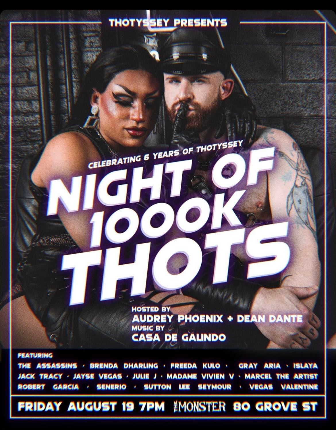 This Friday (August 19th) marks the return of Night of 1000 Thots, Thotyssey’s 6th anniversary showcase! The show will be in the sexy disco sub-level of the historic Monster Bar in the West Village, hosted by the creators of the “Leather & Lace” fetish romp, Audrey Phoenix & Dean Dante, alongside top local DJ CasaContinueContinue reading “Night of 1000 Thots Returns This Friday!”