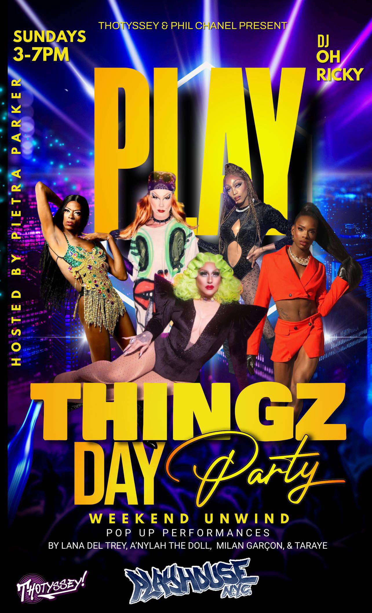 We at Thotyssey and our sis Phil Chanel have been loving watching our day party “Playthingz” flourish at Playhouse! Every Sunday from 3pm to 7pm, “Playthingz has become THE post-brunch destination in the West Village! VJ OhRicky’s Eurocheese, pop remixes, and Kylie stanning videos make for the perfect feelgood soundtrack of the day, and we’ve got an amazingContinueContinue reading “Playthingz: Tomorrow’s a Big One!”